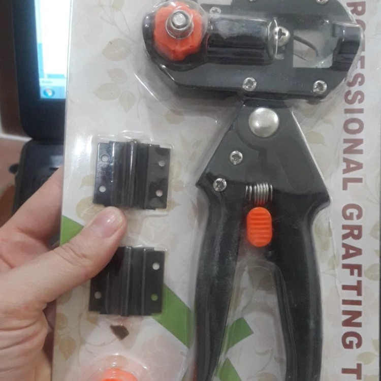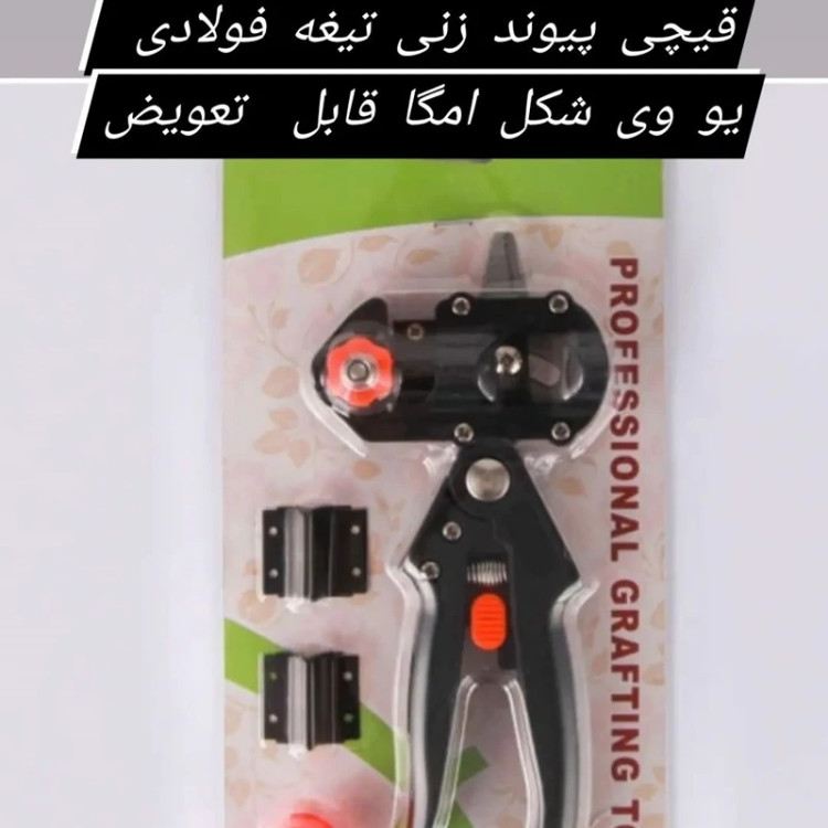 قیچی پیوند زنی و هرس.دارای تیغه فولادی قابل تعویض (پس کرایه)